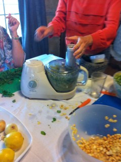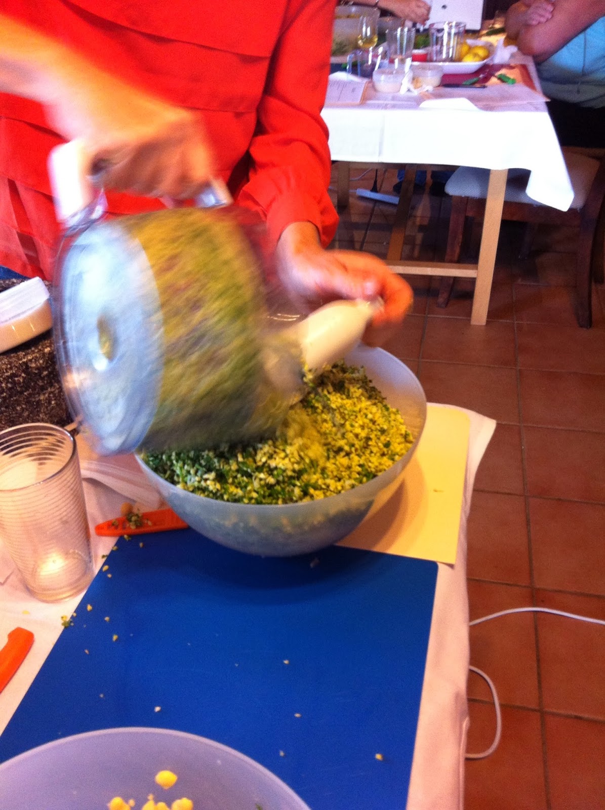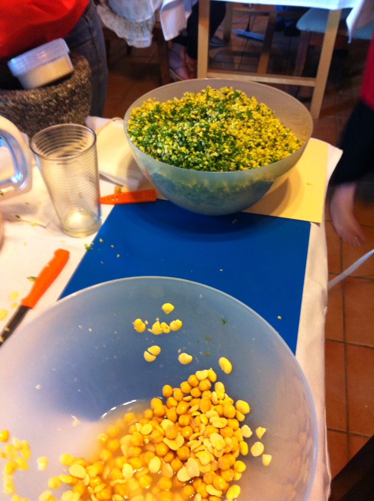 Then it’s all hands on deck! (Note the sneaky hand in the chick peas!!)