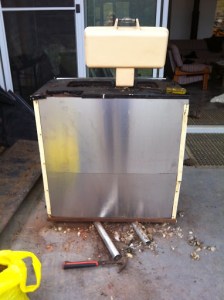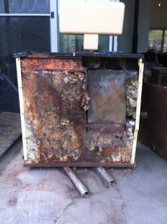 Trent did the most amazing job in restoring the stove. The back had completely rusted out, the chimney casing was cracked and the fire bricks inside had to be replaced. All that and we still had to move it into the house! This solid enamel cast iron stove weigh a tonne. It took 5 men to move it out of her house. We used steel pipes to roll it into place in our new house.
