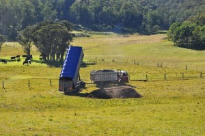 The cow’s weren’t bothered but the truck in the paddock or the unloading of the poo, but they soon headed for the hills. Let me tell you when the cows are offended by the smell…it’s bad.
